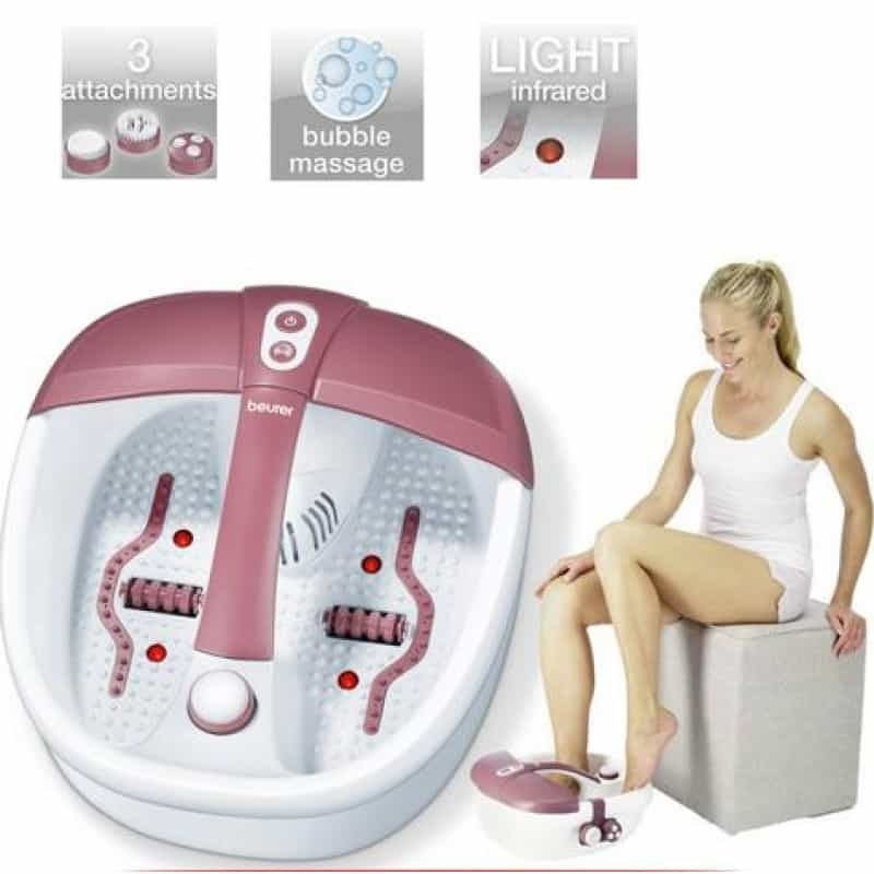 يعتبر Beurer FB 35 سبا منزلي للقدم يعمل بثلاث طرق لإزالة الألم من قدميك: - تدليك بالاهتزاز يهدئ الضغط المتراكم. - تدليك الفقاعات يعجن قدميك للاسترخاء العام. - البكرة الانعكاسية تستهدف نقاط الضغط